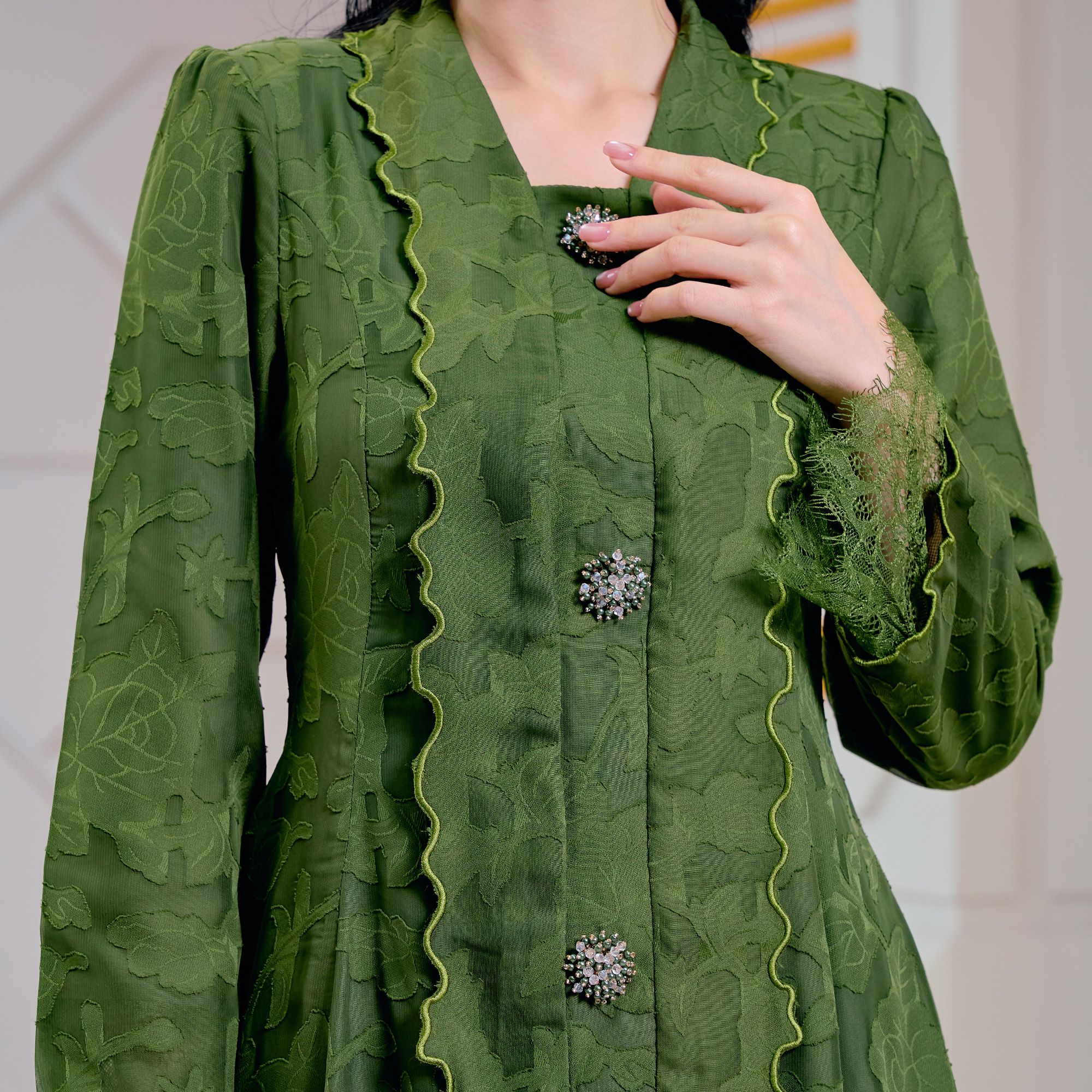 Decorative Finish: Adorned with classic dummy buttons at the front to preserve the traditional Kebaya aesthetic.
