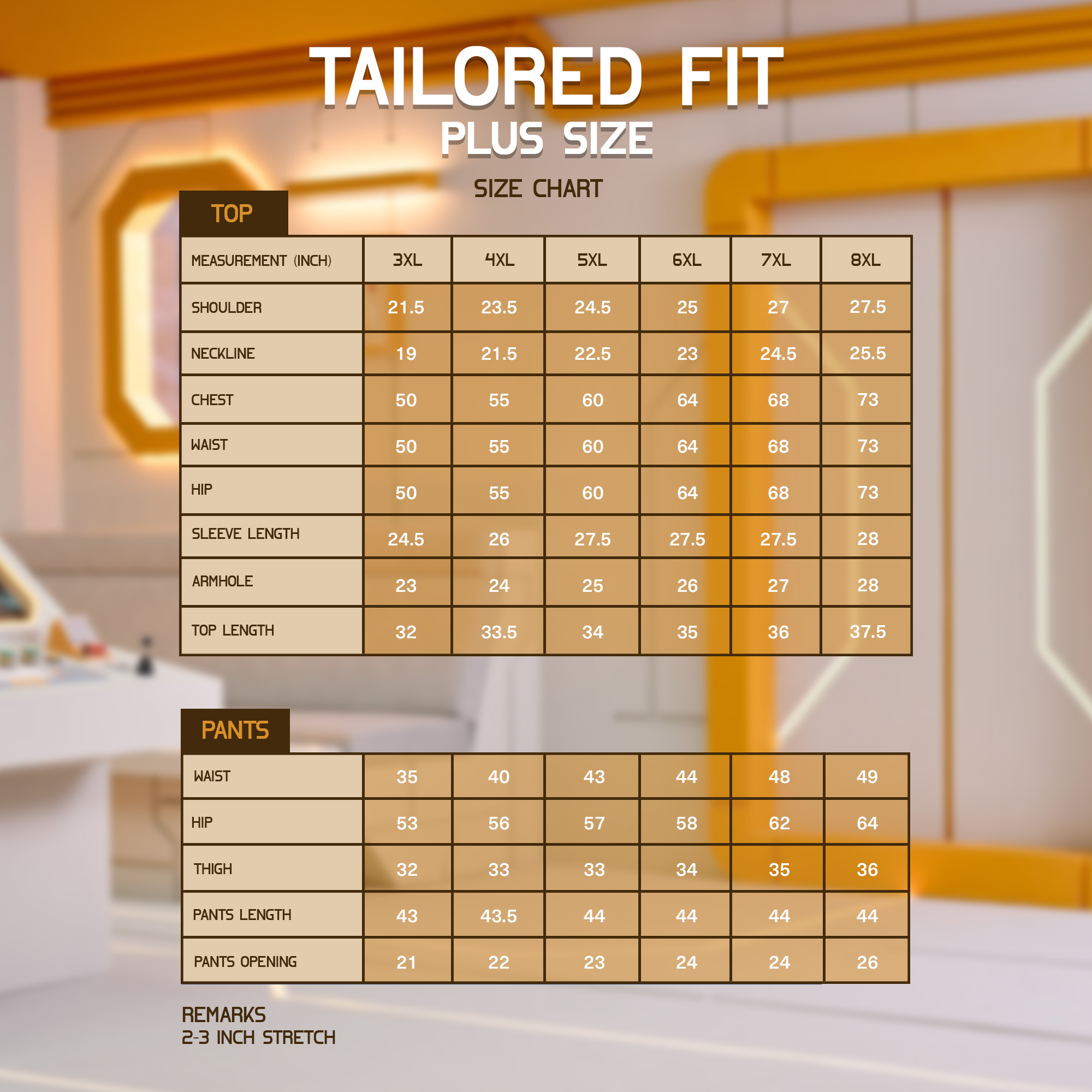 XS, S, M, L, XL, XXL, 3XL, 4XL, 5XL, 6XL, 7XL, 8XL