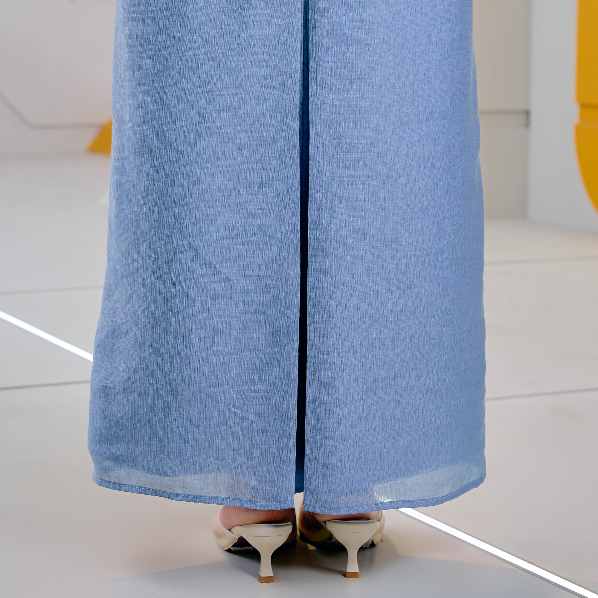 Style: Structured box pleated skirt that offers elegant volume and movement.