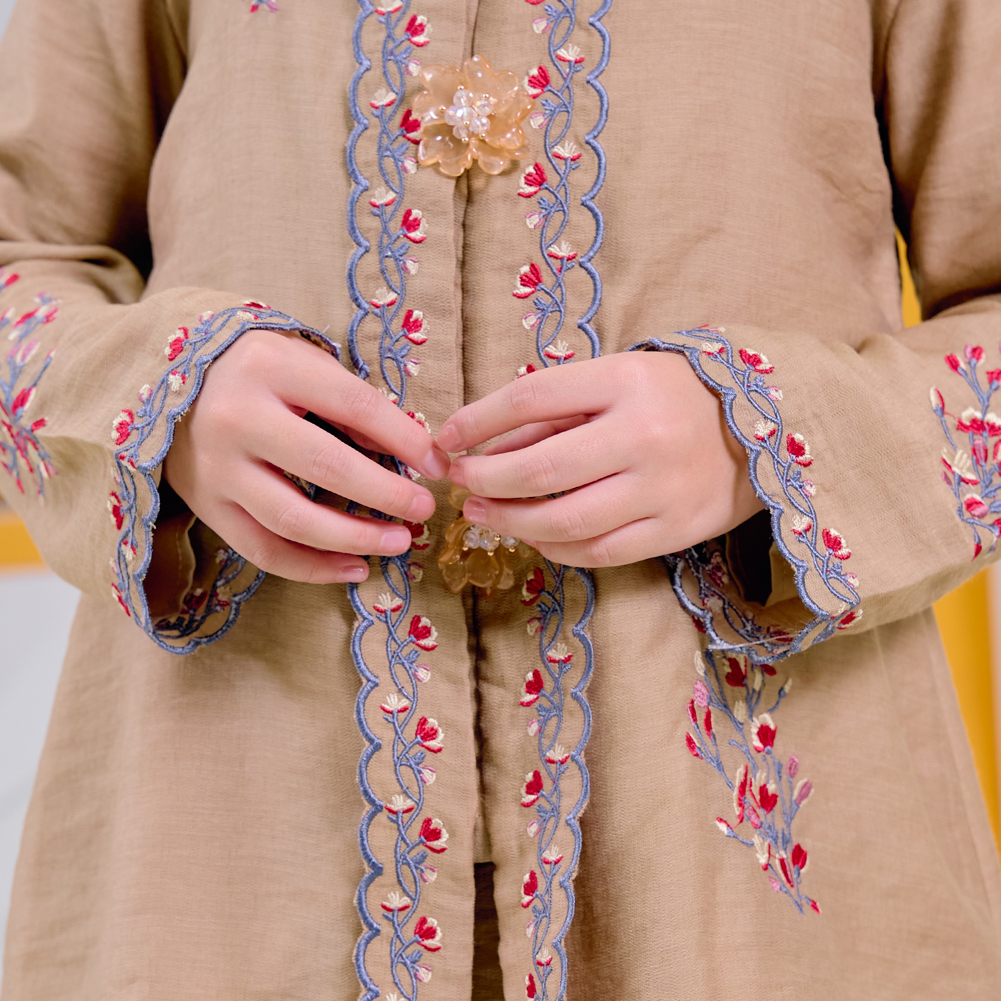 Cutting: Classic Kebaya cutting adjusted for a comfortable kids’ fit.
