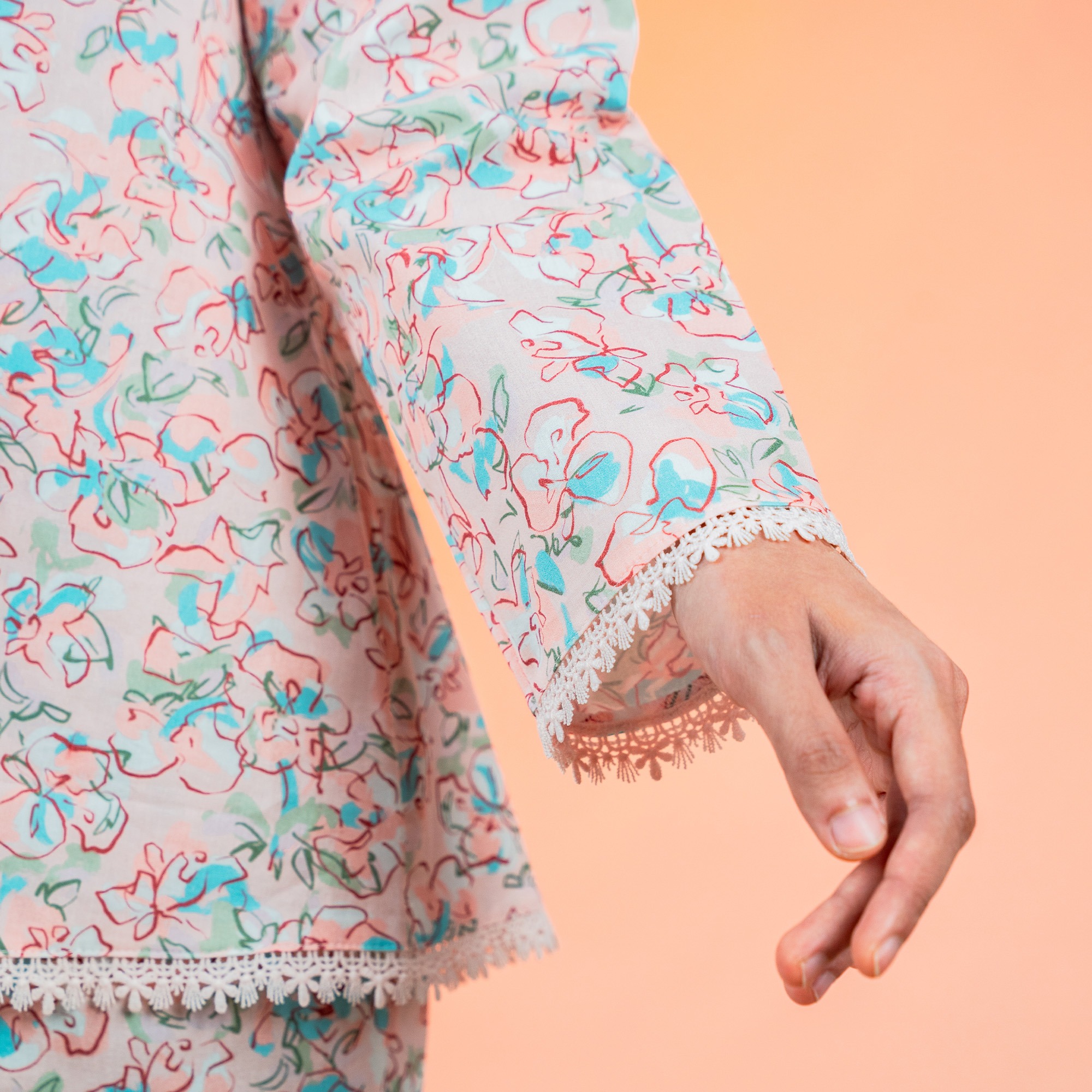 Trimming details along the hemline and sleeve edges for added exclusivity