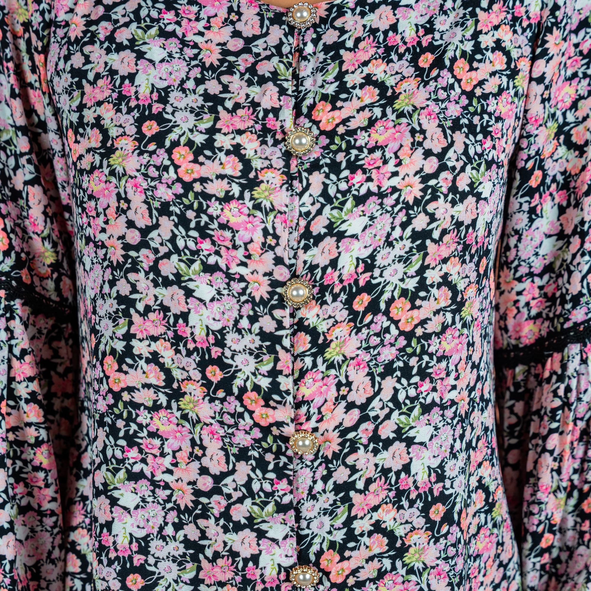 Front opening with pearl buttons for a classic and luxurious touch