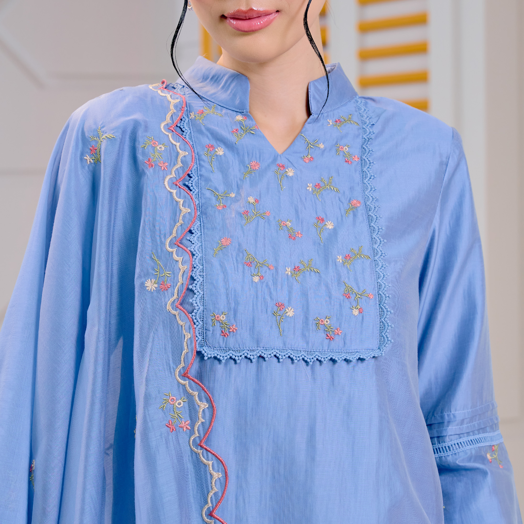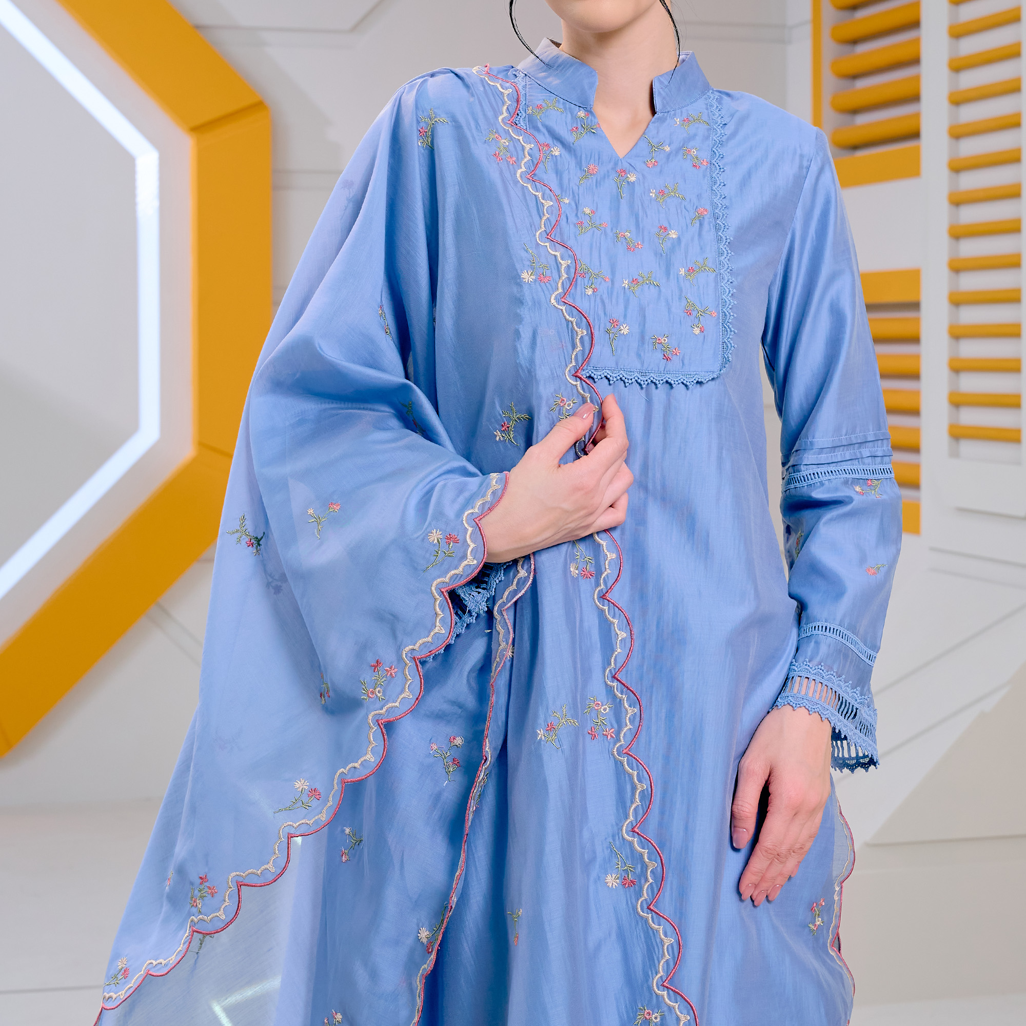 Sleeves: Elegant pleated sleeves finished with intricate trimming at the cuffs.